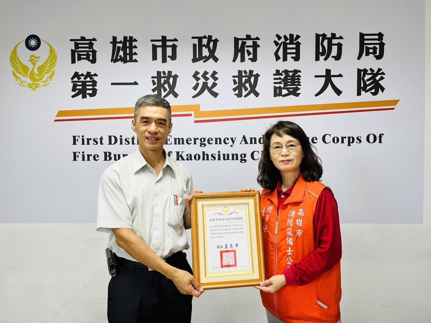 112年理、監事捐贈住宅用火災警報器給高雄市政府消防局第一救災救護大隊