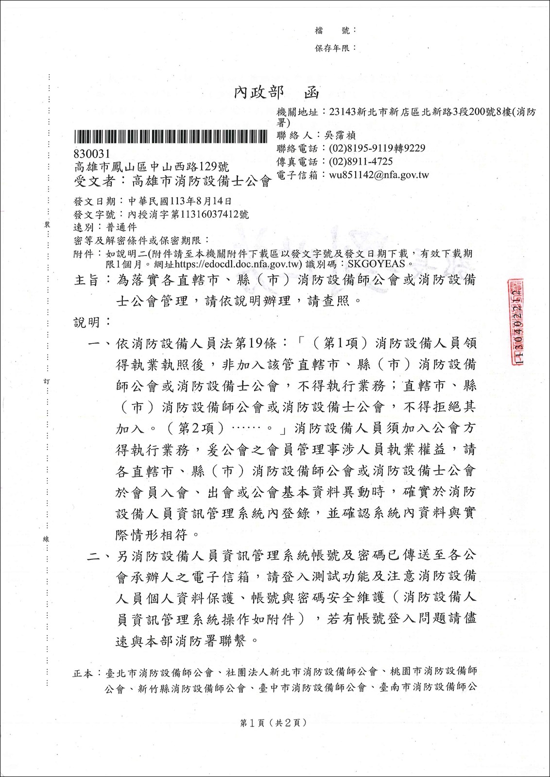 為落實各直轄市、縣(市)消防設備師公會或消防設備士公會管理,請依說明辦理。