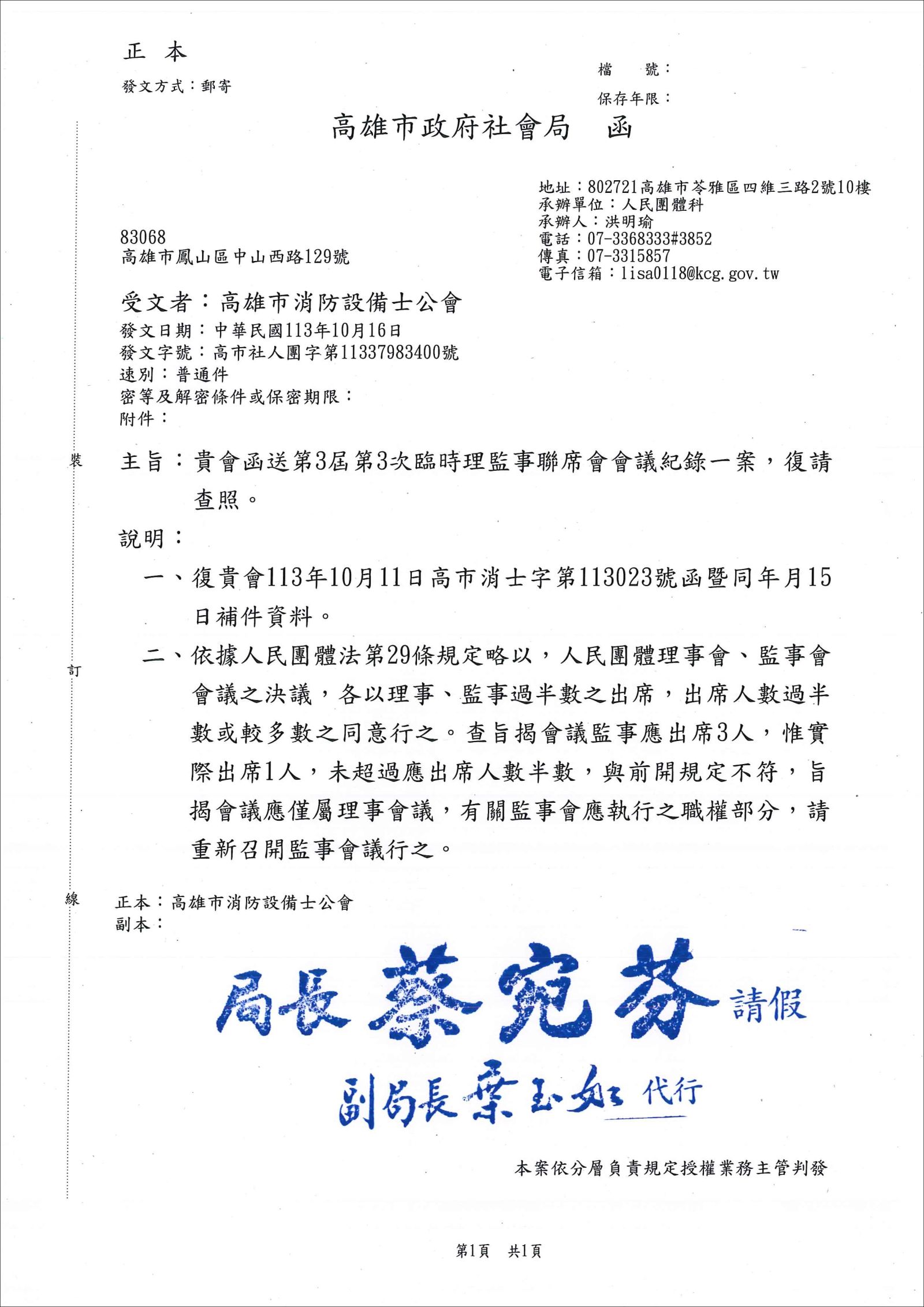 本會函送第3屆第3次臨時理監事聯席會會議記錄一案。